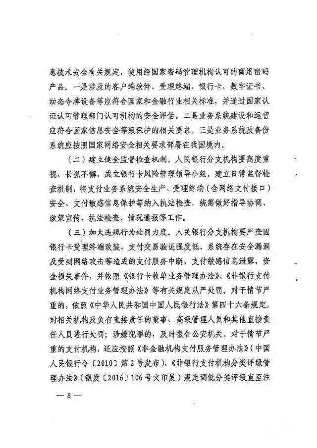 央行下发特急通知央行《中国人民银行关于进一步加强银行卡风险管理的通知》 , , ,给各机构 , , ,此次通知主要在面对移动通信技术和移动金融迅速发展的情况下 , , ,银行卡支付安全方面面临着新的挑战 , , ,央行此次文件覆盖的内容较全面的对参与银行卡支付产业各机构给出比较明确的管控指导方向!